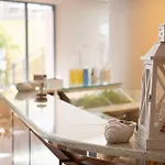 Furnished with a writing table, the 47 rooms also include such conveniences as high-speed internet and a flat-screen TV with satellite channels, along with a mini-fridge-bar. Bathrooms are fitted with a bidet, a separate toilet, and a shower as well as hairdryers and bath sheets.